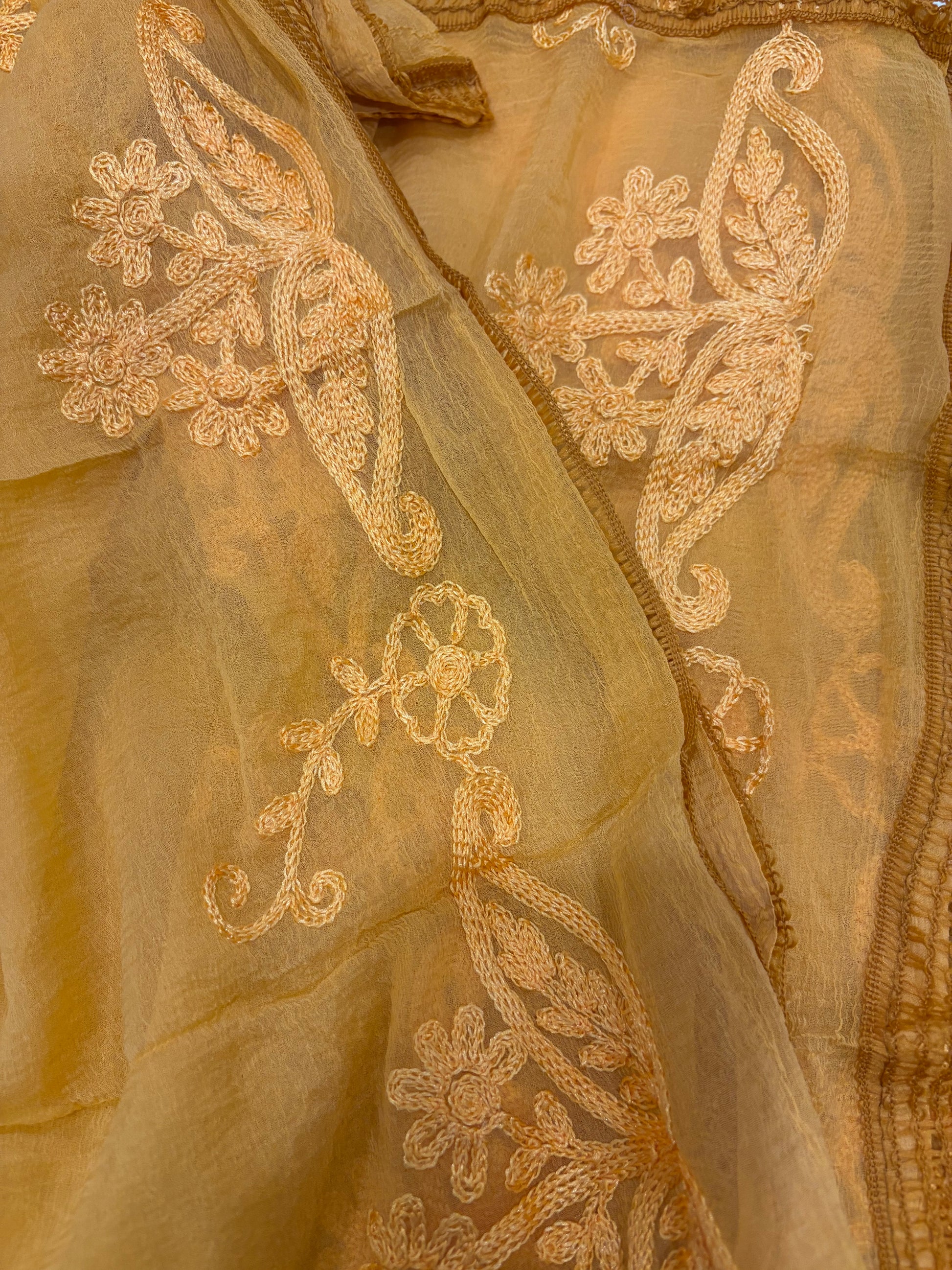 Soft Chiffon 2.25m full embroidered lace border single tone dupatta