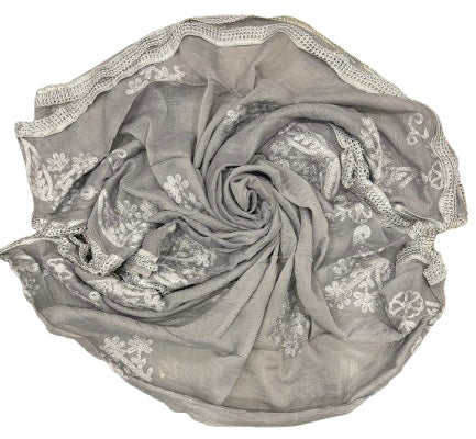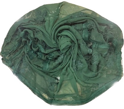 Soft Chiffon 2.25m full embroidered lace border single tone dupatta