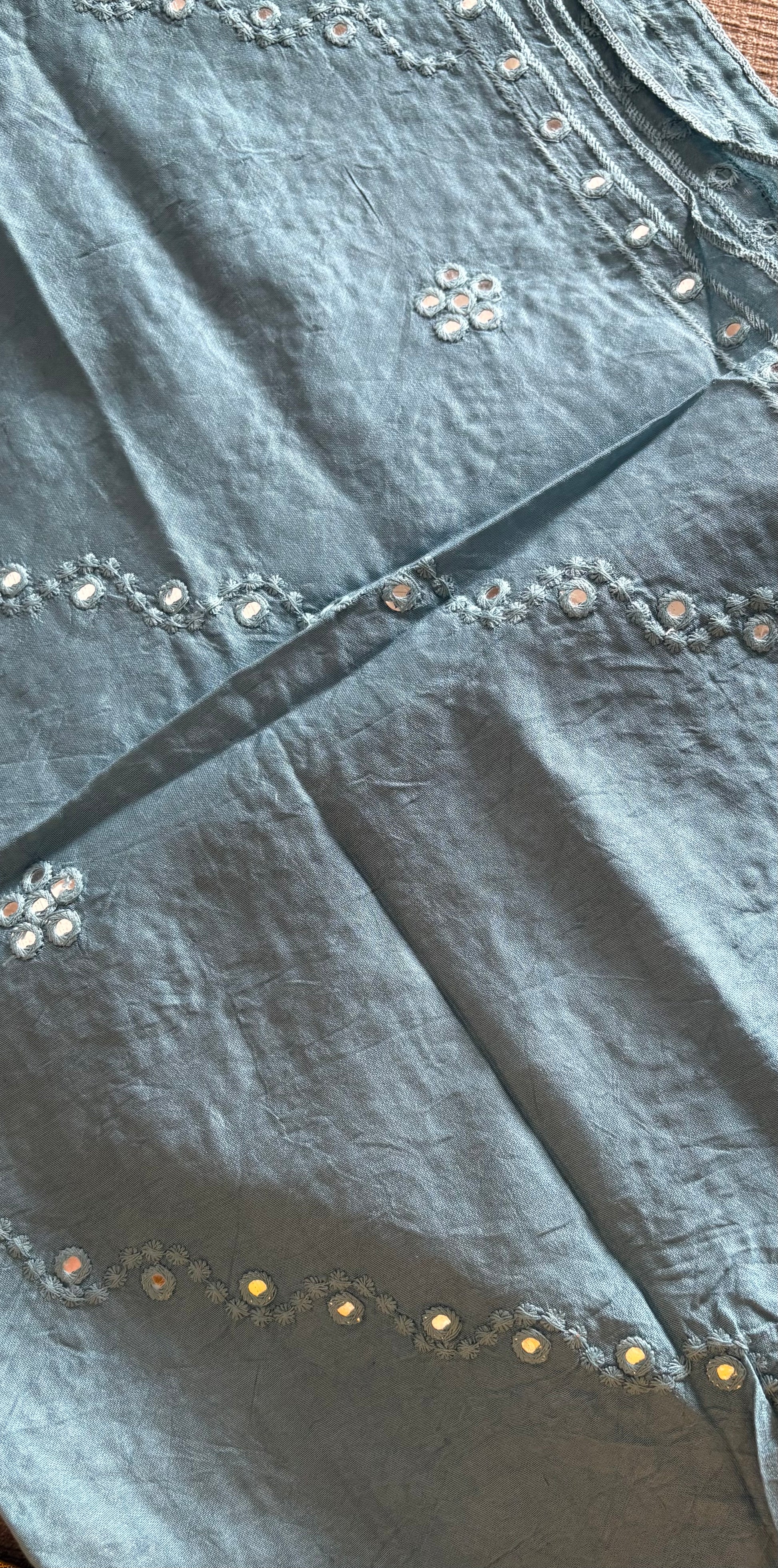 Cotton silk mirror work embroidered dupatta